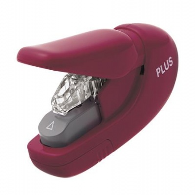 Kapocs nélküli tűzőgép, kézi, 5 lap, PLUS, bordó