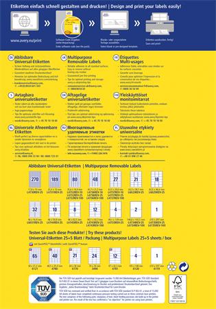 Etikett, univerzális, eltávolítható, 96x50,8 mm, AVERY ZWECKFORM, 300 etikett/csomag